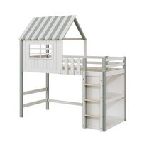Flieks Hochbett Hausbett Kinderbett 90x200cm mit Sicherheitsleiter und Ablagefach