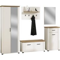 Home affaire Шкафы-Set COSENZA, TOPSELLER!, Breite ca. 285 cm, 5-teilig, in Landhausoptik, (5-St., Шкафыschrank, Sitzbank, Шкафыpaneel, Schuhschrank, Spiegel), Шкафыkombination, Kombination, Diele, Garderobe, Шкафыmöbel
