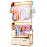 Yorbay Вешалки для одежды für Kinder aus Bambus Kinder Kleiderregal Doppelstangen, mit unterem Oxford-Gewebe-Regal