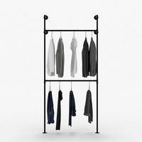 pamo. design Вешалки для одежды KIM DOUBLE Industrial Kleiderstange zur Wandmontage, Offener Kleiderschrank / Garderobe aus schwarzen Wasserrohren