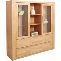 Woodroom Highboard Gera (Wildeiche massiv geölt), Highboard, Vitrine, Schrank mit Glastüren, Wohnzimmerschrank