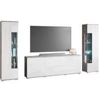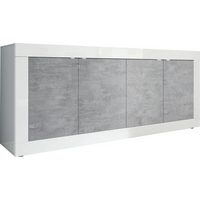HBZ Sideboard Stone weiß Hochglanz, Wohnzimmerschrank BxHxT 206x90x45 cm (1 St), Mit 4 Türen, 3 geräumigen Schubkästen, 2 Einlegeböden verstellbar