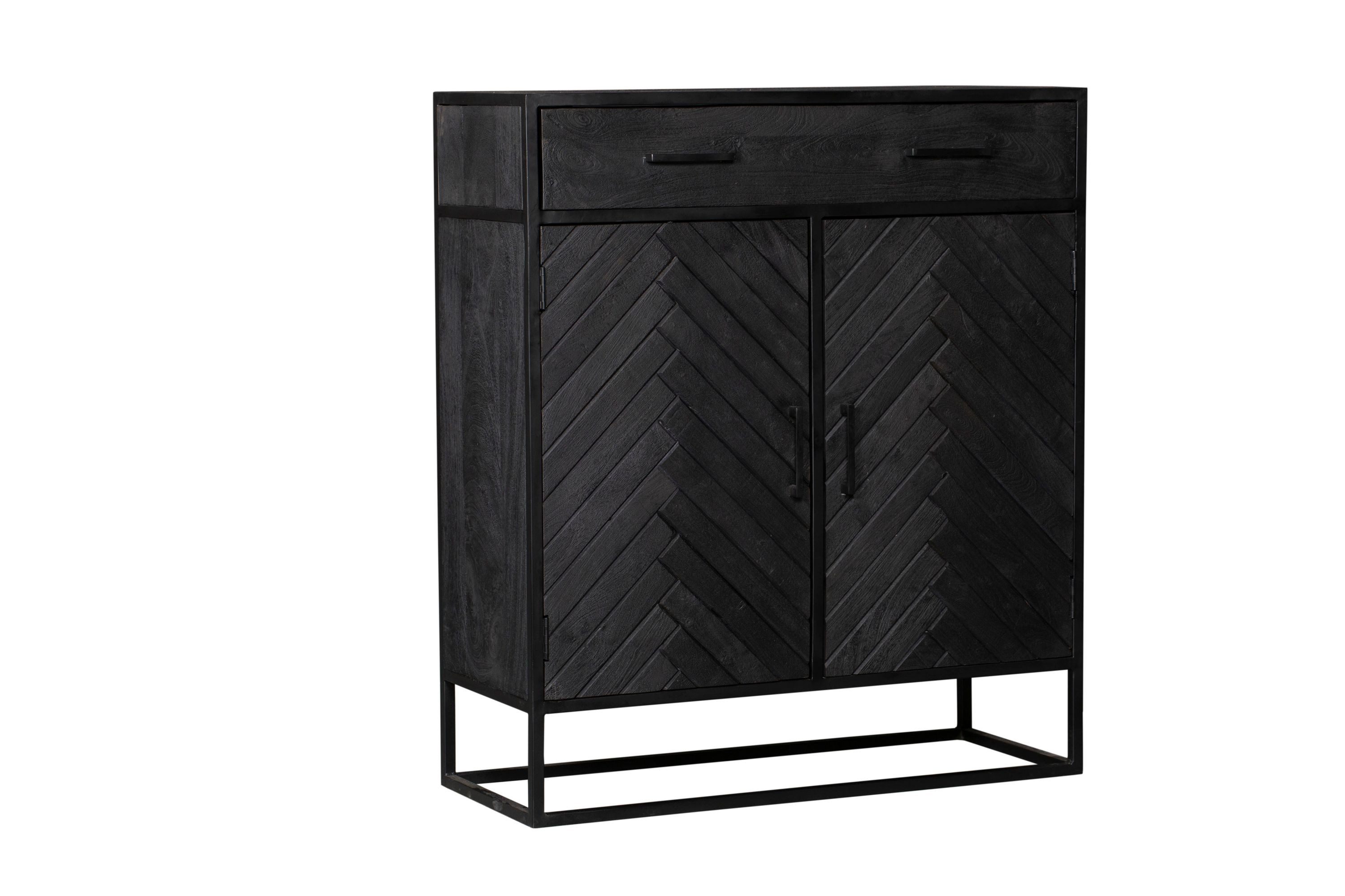 Villa Möbel Kommode (100x40x115cm, 1 St., 1 Kommode), Mangoholz mit Fischgrätmuster und Loungegestell