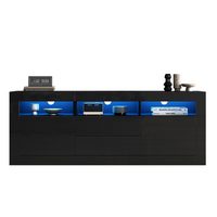 Vladon Lowboard Mogan (TV-Kommode, mit 2 Türen, 1 Klappe und 1 offenes Fach), Schwarz matt/Schwarz Hochglanz (181 x 39 x 35 cm)