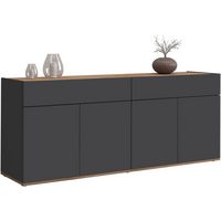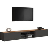 Vladon Lowboard Mogan (TV-Kommode, mit 2 Двери, 1 Klappe und 1 offenes Fach), Anthrazit matt/ Grau Hochglanz (181 x 39 x 35 cm)