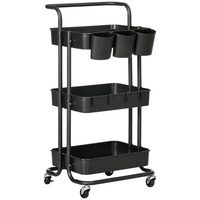 HOMCOM Beistelltisch mit Ladestation, Stoff-Aufbewahrungstasche, Ablage, Metallrahmen (Wohnzimmertisch, 1-St., 3-stufiger Couchtisch), für Wohnzimmer Schlafzimmer 50x50x55,1 cm Naturholz
