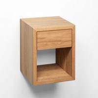 Woodek Design Nachttisch HUGO, elegantes Wandregal im skandinavischem Design H39 x B39 x T30cm (Ablagetisch aus matt lackiertem massivem Eichenholz, 1-St., schwebender Wandschrank), Nachtkommode mit Schublade und Ablage