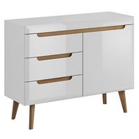 Merax Sideboard hochglanz Anrichte mit LED, Buffetschrank in Weiß & Holzoptik (1 St), Kommode mit 4 Schubladen, 2 Шкафыn & halboffenem Fach, 140x40x70cm