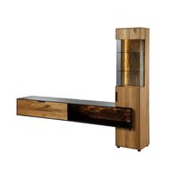 Home affaire Sideboard Ribe,180cm breit,Oberplatte aus Massivholz, 9 Fächer ohne Beleuchtung, Oberplatte Massivholz,schwarze Metall Griffe,2 Türen mit Glaseinsatz