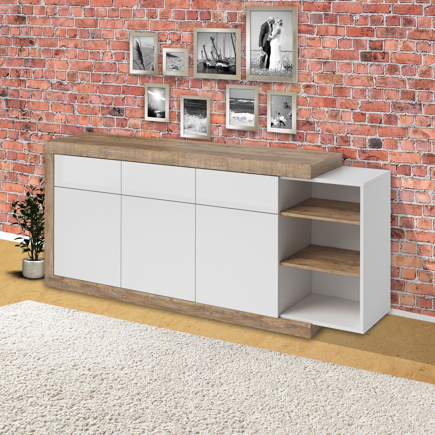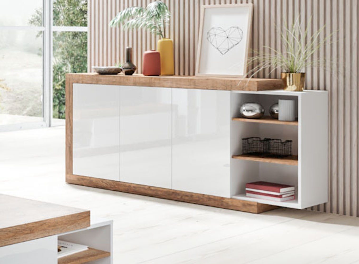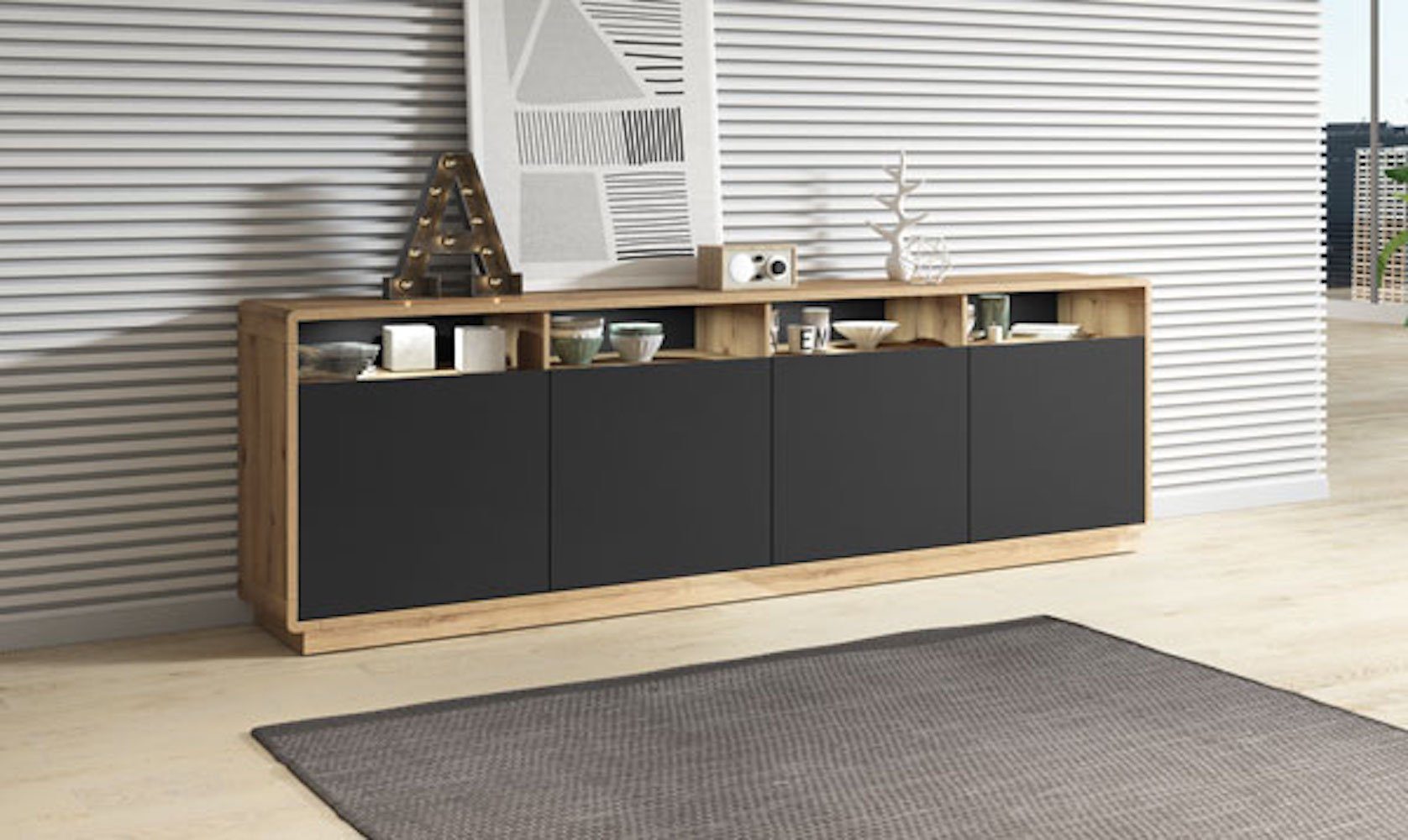 Helvetia Sideboard Aston (mit Türen, mit Soft-Close Funktion, mit offenen Fächern, 1 St., moderne Optik, 4-türig, mit offenen Fächern), 238x40x74cm Taurus Eiche schwarz 4-türig
