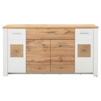 LIV'IN Sideboard MATERA, B 164 x T 46 cm, Weiß supermatt, Eiche Altholz Dekor, 4 Türen, 1 Schublade