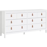 Vladon Sideboard La Paz V1 (Kommode, mit 2 Türen und 4 Выдвижные ящики), Weiß Hochglanz / Eiche sägerau (167 x 72 x 35)