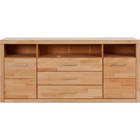 Home affaire Sideboard Vetro,150cm breit,40 cm tief, Fronten Massivholz,6 Fächer, Kernbuche massiv, Holzwerkstoff, 3Türen,3 Schubladen, Griffmulden