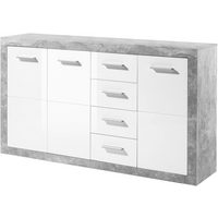 HBZ Sideboard Stone weiß Hochglanz, Schrank mit Schubkästen BxHxT 66x102x37 cm (1 St), Beton Dekor und weiß Hochglanz, Schrank mit 6 Schubkästen