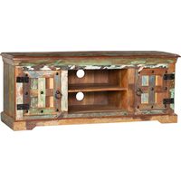 FINEBUY Lowboard TV Board Massivholz 160 cm Retro Schubladen Fächer (zwei Schubladen, 160x50x45 cm, Massivholz Vintage), TV-Schrank Retro Fernsehtisch, TV-Kommode Niedrig