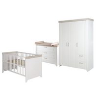 roba® Babyzimmer-Komplettset Sidney - modernes Kinderzimmer in Cashmere & Eiche, (Komplett-Set, 3-tlg., Babybett 70 x 140 cm, Wickelkommode, Kleiderschrank), Griffe & Füße aus Massivholz - Mit hochwertigen Fräsungen im Holz