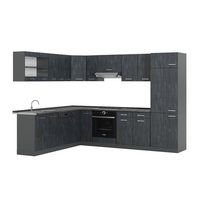 Vicco Winkelküche R-Line, Schwarz Beton/Anthrazit, 227 x 287 cm ohne Arbeitsplatte