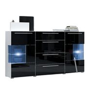 Homfa Кухниbuffet mit LED Кухниschrank Buffetschrank Sideboard schwarz mit Steckdosenleiste & Arbeitsplatte 180x100x38,5cm
