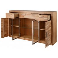 Home affaire Sideboard Ribe,180cm breit,Oberplatte aus Massivholz, 9 Fächer ohne Beleuchtung, Holz massiv, Holzwerkstoff, Metall Griffe,2Türen mit Glaseinsatz