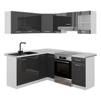 Vicco Winkelküche Rick, Anthrazit Hochglanz/Weiß/Weiß, 190 x 60 cm, AP Marmor