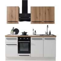 Homestyle4u Кухниzeile 160 cm ohne Geräte klein Einbauküche Singleküche Weiß matt Eiche Glas, (Oberschränke, Unterschränke, Arbeitsplatte), Кухниblock, Weiß/Creme und Braun
