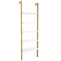 COSTWAY Leiterregal 5 Ebene Bücherregal, mit goldenem Metallrahmen, 180cm