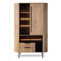 DELIFE Vitrine Live-Edge Akazie Natur 60x190 cm 1 Tür 2 Schubladen Massiv Baumkante