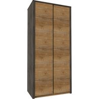 Pol-Power Kleiderschrank SMOOTHY, 4-türig, Anthrazit, Viking Eiche Dekor, Drehtüren mit Glasfronten, B 267 x H 225 x T 61 cm