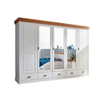 Woodroom Kinderkleiderschrank Vik (Kiefer massiv weiß gewachst, 3 Schubladen und 3 Türen) Kleiderschrank, Kleideraufbewahrung, Schrank