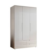 PREISBRECHER Kleiderschrank Spice 3 Türen, 4 Schübe, in Weiß / Weiß Hochglanz - 126x208x57 (BxHxT)