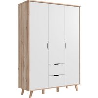 Lomadox Eckschrank JOHANNESBURG-43 in San Remo Eiche Nb. mit weiß, gespiegelt aufbaubar, 124/201/148 cm