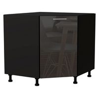 Feldmann-Wohnen Eckschrank Essen (D12R/90, 1 Tür, 1-St., moderne Optik, Acrylfronten mit Glaseffekt) 84x84cm Graphit Hochglanz, Schwarz Matt / mit Einlegeboden