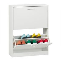 Vladon Schuhschrank Kolmio (Schuhkipper, für 16 Paar Schuhe mit 2 Klappen und Schublade) Weiß matt/Weiß Hochglanz (85 x 87 x 33 cm)