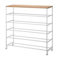 Yamazaki Schuhregal "Tower" auf Rollen groß 91x87x26 cm, Schuhständer, Schuhschrank mit Holzablage, rollbar für bis zu 20 Paar Schuhe