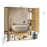 VASAGLE Spiegelschrank Badezimmerschrank Wandschrank Breite 70cm, LED-Beleuchtung, Stecker, Hängekorb, Haartrockner-Halter