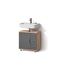 Vicco Waschbeckenunterschrank Ilias, Anthrazit/Goldkraft Eiche, 60.2 x 60.8 cm mit Tür und 3 Sch...