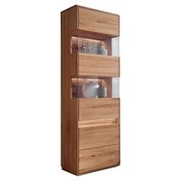 Lomadox Vitrine WELLAND-69 63 cm, Kernbuche massiv geölt mit LED-Beleuchtung, Türanschlag rechts