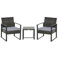 Melko Sitzgruppe Sitzgarnitur Grau Polyrattan Balkonset Essgarnitur Gartenmöbel Set, (elegantes Set im Lounge-Design, 3-tlg., inkl. Auflagen für mehr Komfort), 3-teiliges Rattanmöbel Set mit verstellbarer Rücken- & Fußlehne