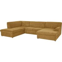Goldstoff Wohnlandschaft mit Schlaffunktion, Couch für Wohnzimmer - Schlafsofa - Eckcouch, VENUS - Sofa U Form, Ecksofa mit Schlaffunktion und Bettkasten in gold