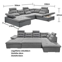 MIRJAN24 Wohnlandschaft Torezio Bis, mit Bettkasten und Schlaffunktion, Einstellbare Kopfstützen, 346x203x70-90 cm, U-Form