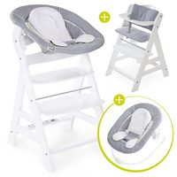 Hauck Hochstuhl Alpha Plus Grey - Newborn Set (Set, 4 St), Holz Babystuhl ab Geburt mit Aufsatz für Neugeborene höhenverstellbar