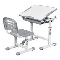 COSTWAY Kinderschreibtisch, mit Stuhl, höhenverstellbar, neigbar, Grau