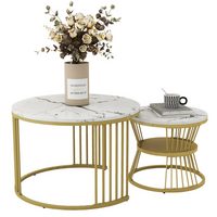 Merax Couchtisch hochglanz Tischplatte in Marmoroptik (2-St), Beistelltisch mit Metallrahmen, Satztisch Holz