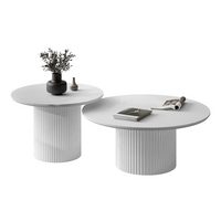 Merax Couchtisch Set rund Satztisch Wohnzimmertisch 1,5 cm Platte, Marmoroptik, 2er Set, Satztisch Wohnzimmertisch, Industrial