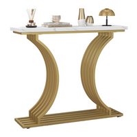 COSTWAY Konsolentisch, schmal, geometrischer Metallrahmen, Marmor, 120cm gold
