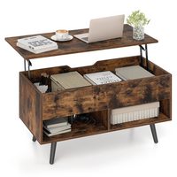 COSTWAY Couchtisch, höhenverstellbar, anhebbar, mit Stauraum & Fächern, Holz