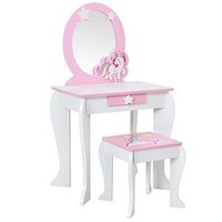 COSTWAY Schminktisch, Kinder, mit Hocker, Schublade und abnehmbarer Spiegel
