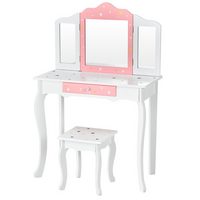 COSTWAY Schminktisch (mit Hocker), mit klappbaren Spiegel & Schublade