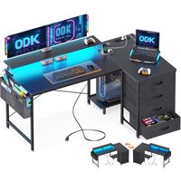 ODK Schreibtisch L Form mit Schubladen, Umkehrbar Eckschreibtisch mit LED