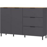 Lomadox Büromöbel-Set CRISP-61, (Spar-Set, 10-tlg., Schreibtisch Regal Aktenschrank Kommode Aktenregal), Büroausstattung Büroschrank Set anthrazit mit Eiche, grifflose Optik